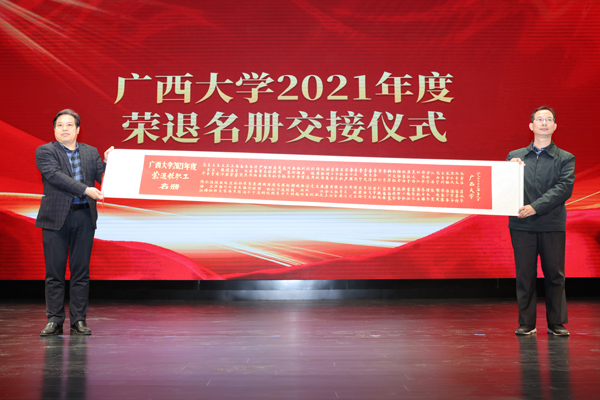 廣西大學2021年度榮退名冊交接儀式。黃南攝
