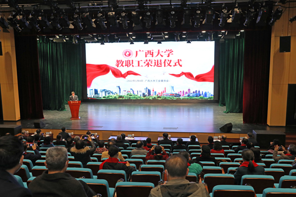 1月8日,由廣西大學工會委員會主辦的“廣西大學2021年度教職工榮退儀式”在廣西大學匯學堂多功能廳舉行。