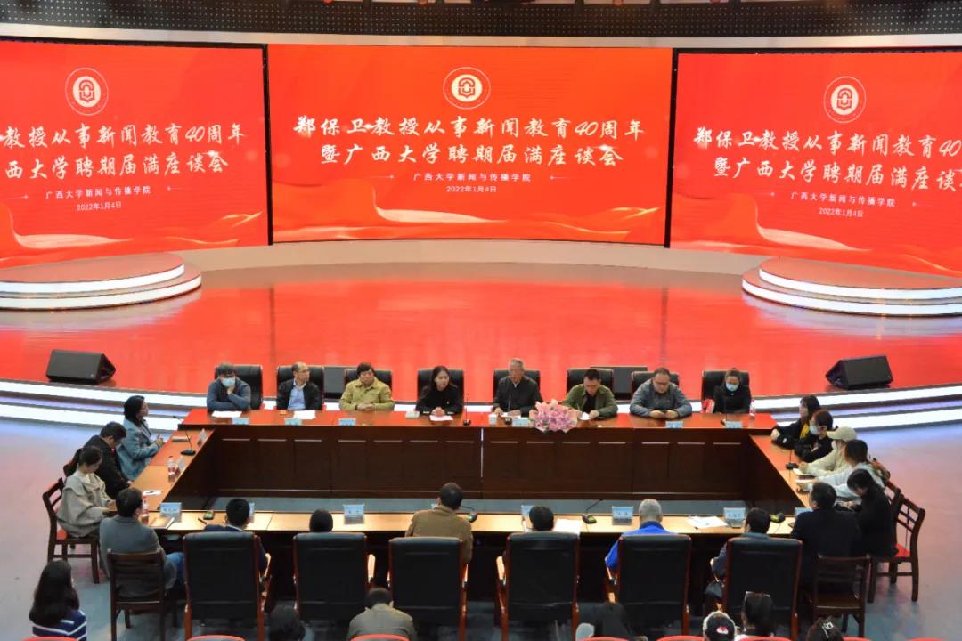 1月4日,廣西大學新聞與傳播學院在融媒體中心為我舉行了從事新聞教育40周年暨廣西大學聘期屆滿座談會,以此作為結束我院長任期的儀式。記得四年前,即2017年12月27日,也是在這個大廳,我從趙躍宇校長手中接過院長聘書,沒想到轉眼間四年就過去了。而自1981年11月我從中國人民大學新聞系研究生畢業到北京國際政治學院新聞系任教算起,迄今正好是40周年。追溯40年的新聞從教歷程,特別是回望在廣西大學擔任院長的四年時光,讓我好生感慨!沒想到,廣西大學竟然成為我從1964年考上中國人民大學新聞系開始的近六十年追夢新聞之路,最后得以圓夢的地方!