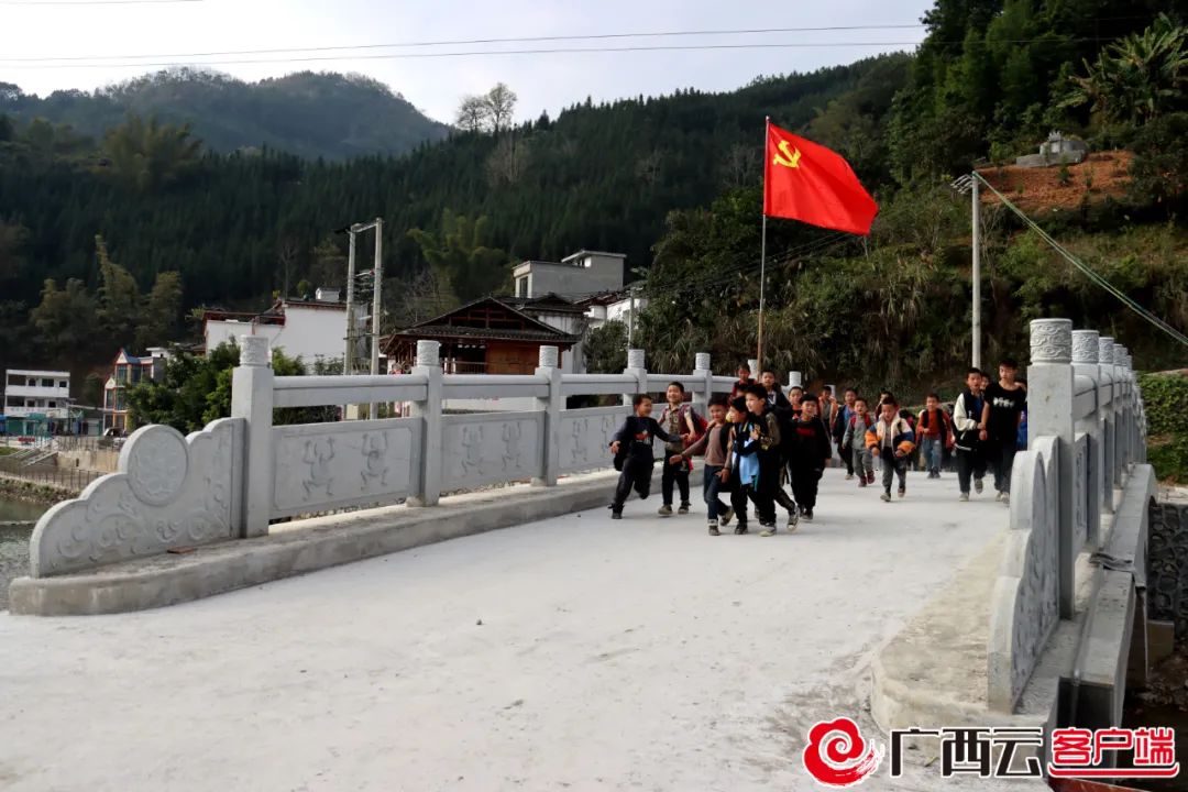孩子們背著書包歡快地從橋上走過,小貨車?yán)焊a(chǎn)資料從這里進了村。3月1日,河池市天峨縣六排鎮(zhèn)納洞村的父老鄉(xiāng)親像過年一樣開心。當(dāng)天,全國首座“茅以升公益橋——院士橋”在村里建成。這座由北京茅以升科技教育基金會發(fā)起,中國工程院院士鄭皆連、秦順全捐資,廣西北部灣投資集團有限公司無償設(shè)計建設(shè)的小橋,是一座院士心系老區(qū)的民生橋、國企擔(dān)當(dāng)實干的連心橋、村民奔小康的致富橋。