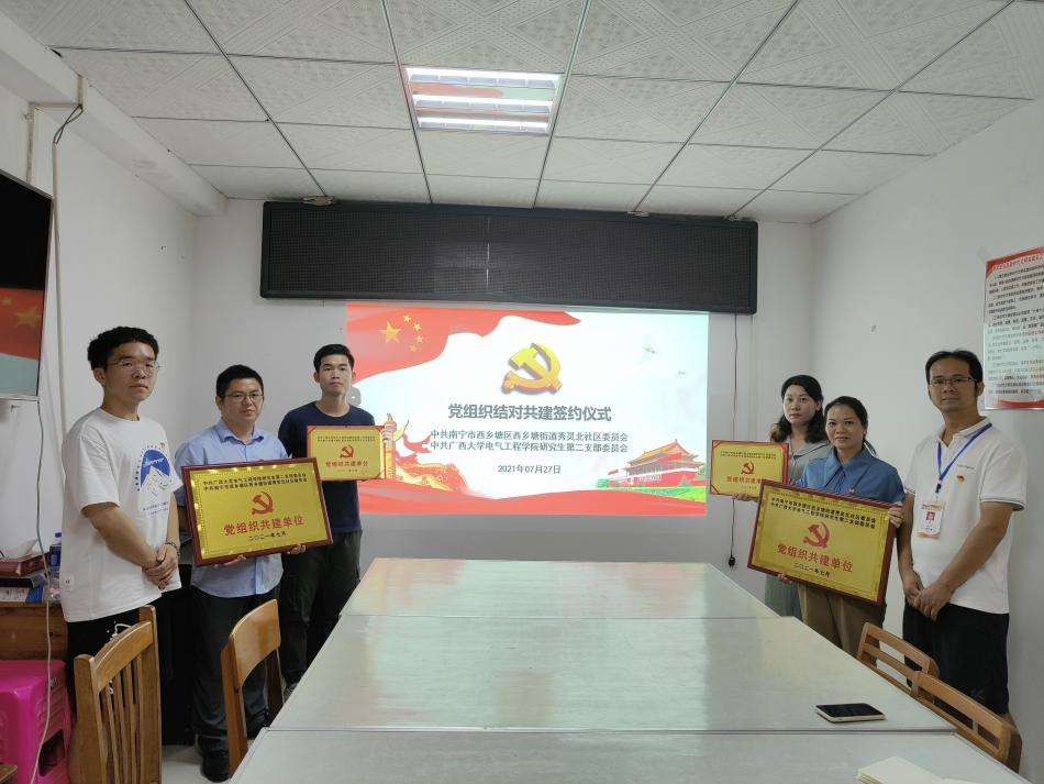 研二支部與社區黨支部結對共建簽約儀式。廣西大學電氣工程學院供圖
