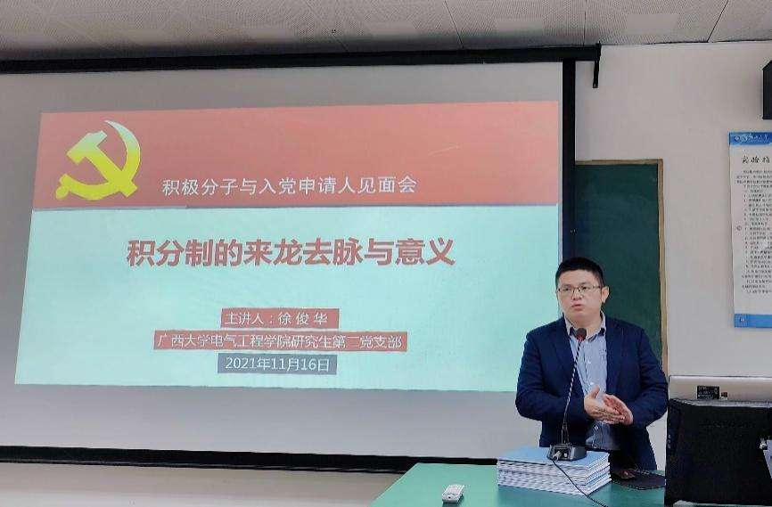 廣西大學電氣工程學院研究生第二黨支部書記講解積分制。廣西大學電氣工程學院供圖