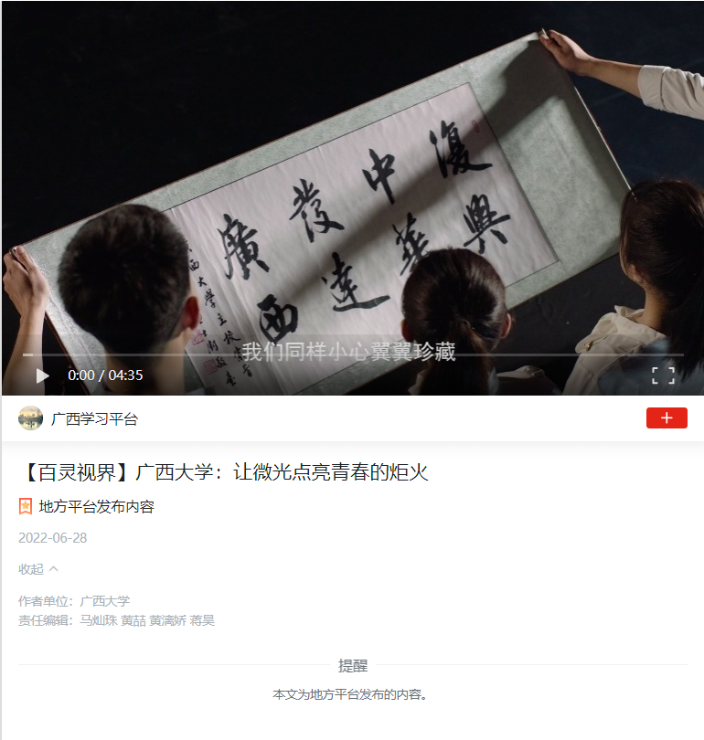 作者:     編輯:賈琦艷     來源:學(xué)習(xí)強(qiáng)國——廣西學(xué)習(xí)平臺   發(fā)表于: 2022-06-29 14:51  點擊: