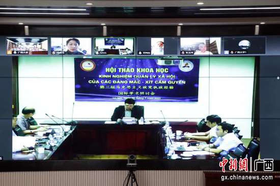 中新網廣西新聞7月23日電 7月20日,“馬克思主義政黨執政經驗”國際學術研討會在廣西大學馬克思主義學院101報告廳舉行。本次研討會邀請到200余名來自越南、老撾及中國國內馬克思主義理論學科的知名專家學者,采取線上線下同步進行的方式,獲得國際、國內學術界的廣泛關注。