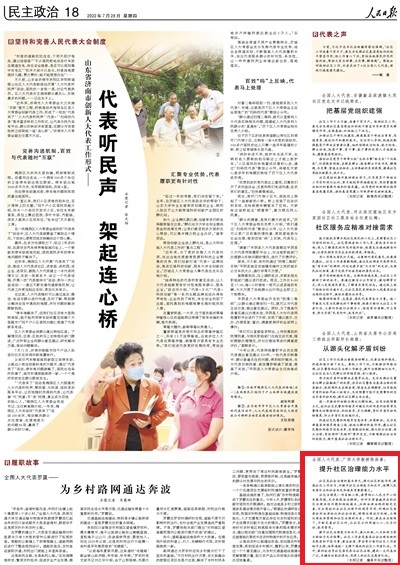 日前,習(xí)近平總書記在新疆考察時(shí)強(qiáng)調(diào),“社區(qū)工作連著千家萬(wàn)戶,要充分發(fā)揮社區(qū)基層黨組織的戰(zhàn)斗堡壘作用,把工作重心下沉,緊貼各族居民所思所想所盼,幫助大家辦好事、辦實(shí)事、解難題”。圍繞如何做好社區(qū)工作,記者采訪了4位全國(guó)人大代表,請(qǐng)他們談?wù)勔庖?jiàn)建議。
