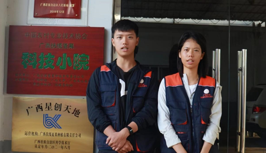 (陳貞潔和廖世明在廣西扶綏堅果科技小院合影)