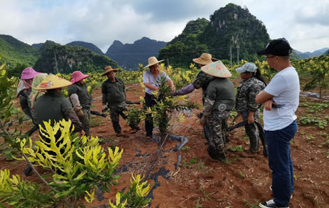 廣西大學教授薛進軍表示“讓農戶接受技術肯定不能是生硬的理論輸出,而要讓農戶真的看到實效,打心里就認可我們的技術”。除了技術研發外,科技小院的成員還得思考怎樣將技術推廣出去。最終,他們決定分成“三步走”的方式。首先建立澳洲堅果田間示范基地,展現技術應用后增產增收的實際效果;其次是建立展廳,發放種植技術手冊以及線上免費發放視頻等形式,向種植戶科普技術;最后通過開展技術培訓班,進行田間指導,讓種植戶真正地學到并掌握技術。