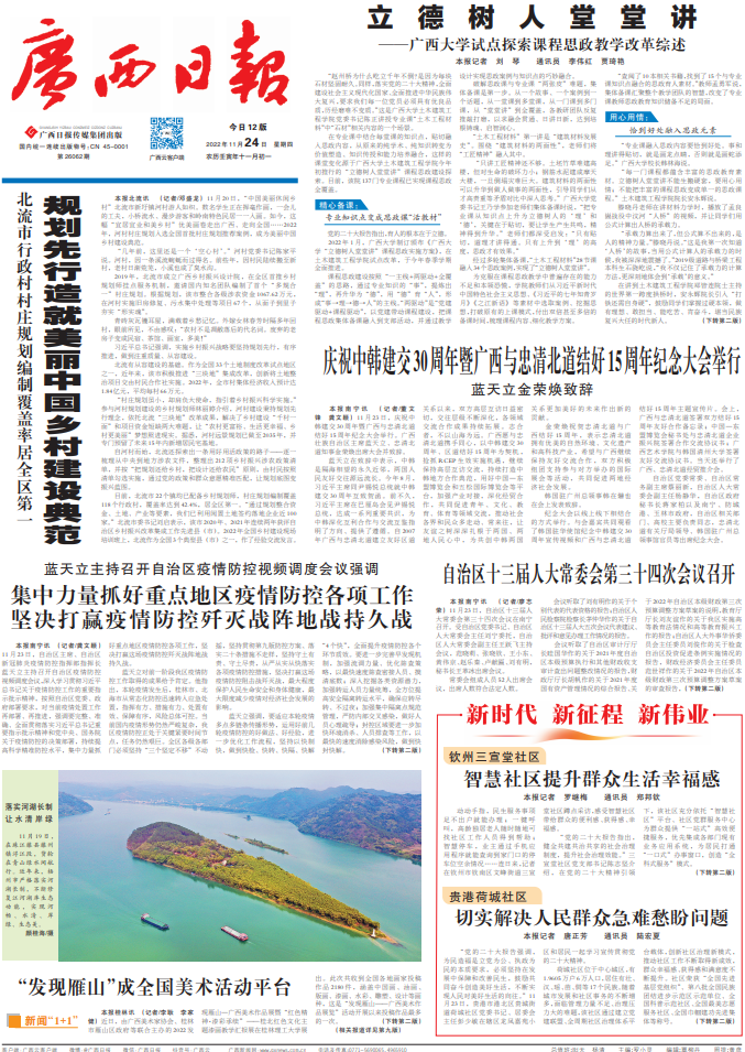 作者:記者 劉 琴 通訊員 李偉紅 賈琦艷     編輯:宣傳部     來源:廣西日?qǐng)?bào)   發(fā)表于: 2022-11-24 16:00  點(diǎn)擊: