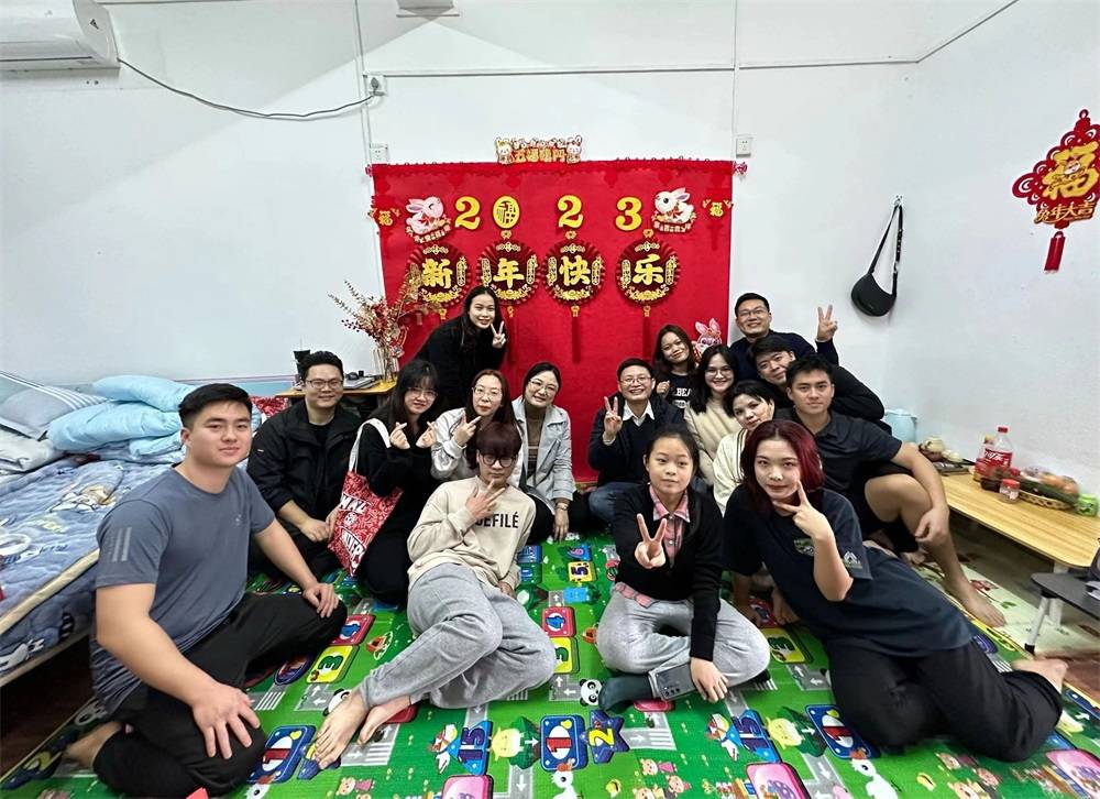 ▲南寧師范大學留校學生聚在一起歡度春節。校方供圖