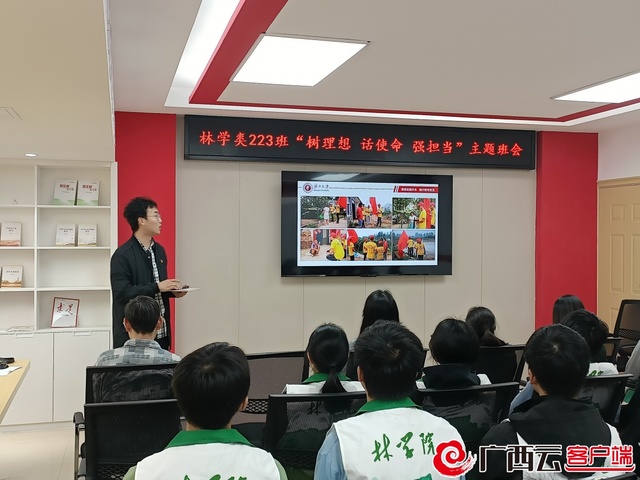 3月5日上午,林學院林學類223班在東30棟學生宿舍園多功能活動室區召開“樹理想、話使命、強擔當”主題班會。第十六屆全國“大學生年度人物”入圍獎獲得者生態學專業2022級研究生吳中華、“全國優秀共青團員”獲得者風景園林專業2020級研究生馬朝陽在會上分享了自己以所學專業知識助力脫貧攻堅的經歷和開展志愿服務的經歷,暢談了對做“有理想、敢擔當、能吃苦、肯奮斗”新時代好青年的認識,號召大家認真學習黨的二十大精神,主動提升專業本領,以所學知識赴祖國鄉村振興的“青春之約”,為中華民族復興和美麗中國建設奉獻青春力量。