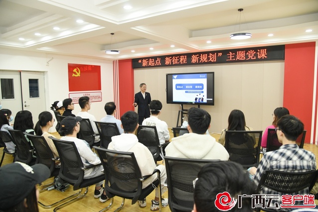 物理科學與工程技術學院黨委書記袁濤上黨課。廣西大學供圖