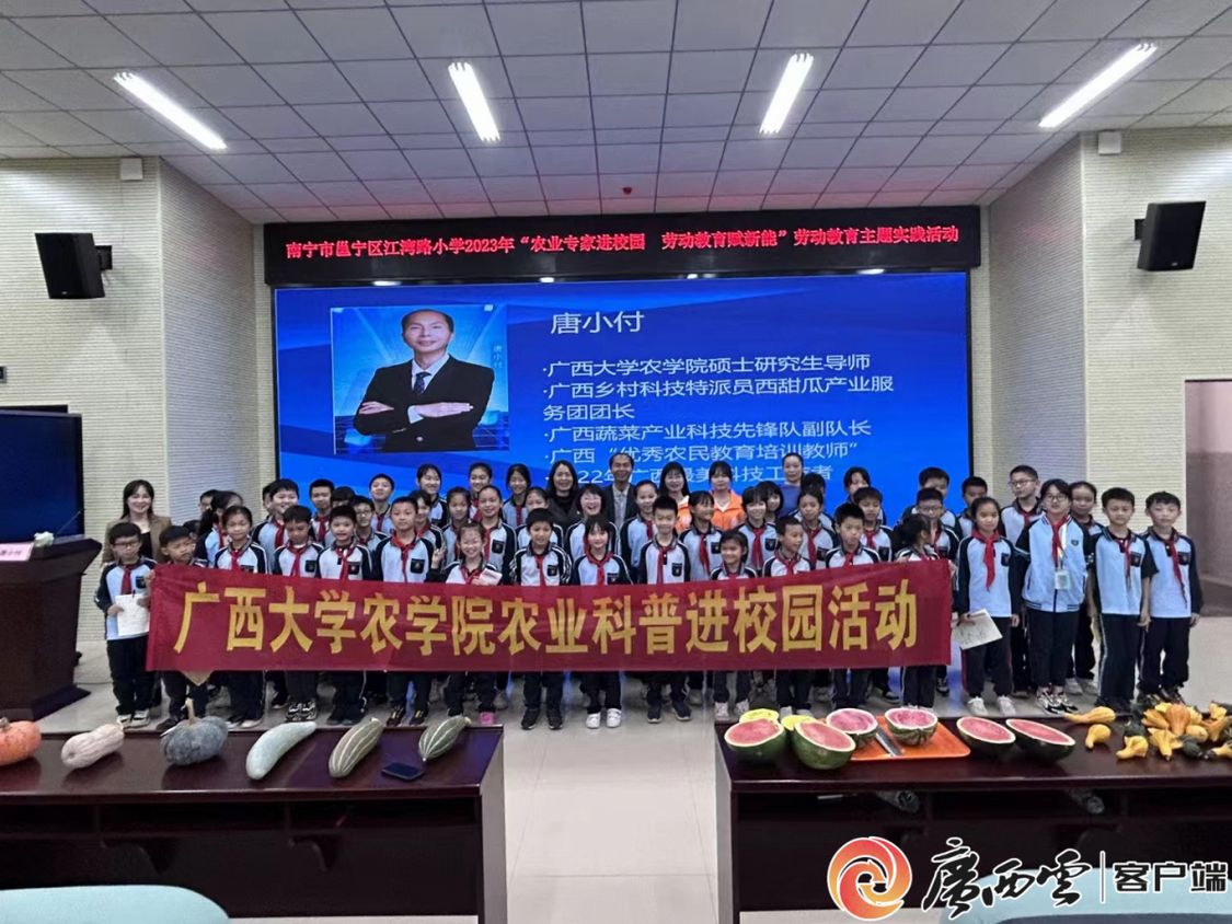 江灣路小學校長王菱表示,“雙減”政策實施后,勞動教育越來越受到關注。此次廣西大學農學院唐小付博士愿意無償來開展公益科普講座,親自指導示范種植,能夠讓孩子們在親身經歷中體會勞動的美好,實實在在地增長勞動技能。