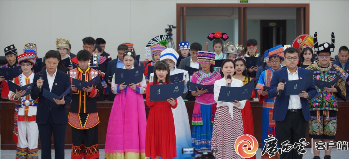 “我在一顆石榴里看見我的祖國,碩大而飽滿的天地之果······”4月10日,在廣西大學君武樓玉林廳,48位不同民族的師生代表,用深情的詩朗誦拉開了廣西大學2023年鑄牢中華民族共同體意識主題宣傳教育活動啟動儀式暨師生座談交流會的序幕。全校26個學院的100余名師生代表在壯族“三月三”即將到來之際,身著民族盛裝,歡聚一堂,共唱民族團結之歌、共享民族進步之果、共話民族工作之策。