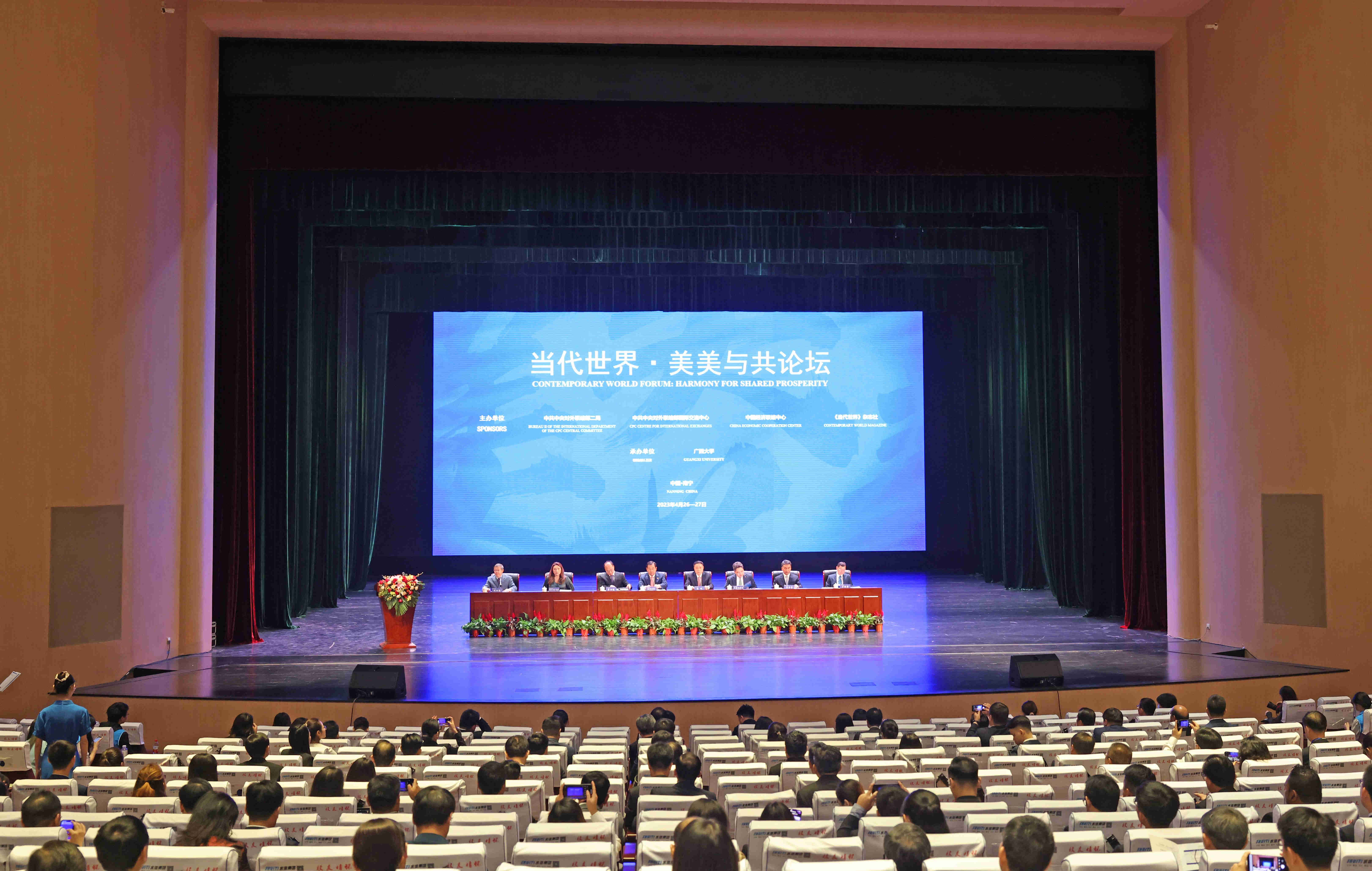 本次論壇由中共中央對外聯絡部二局、中聯部國際交流中心、中國經濟聯絡中心、《當代世界》雜志社聯合舉辦,廣西大學承辦。全國政協辦公廳、中國社會科學院、求是雜志社、新華社、中國國際問題研究院、共青團廣西壯族自治區委、中國鐵建等單位有關負責同志以及來自30多個國家的政黨、智庫、媒體、工商界嘉賓和留學生代表500余人與會。