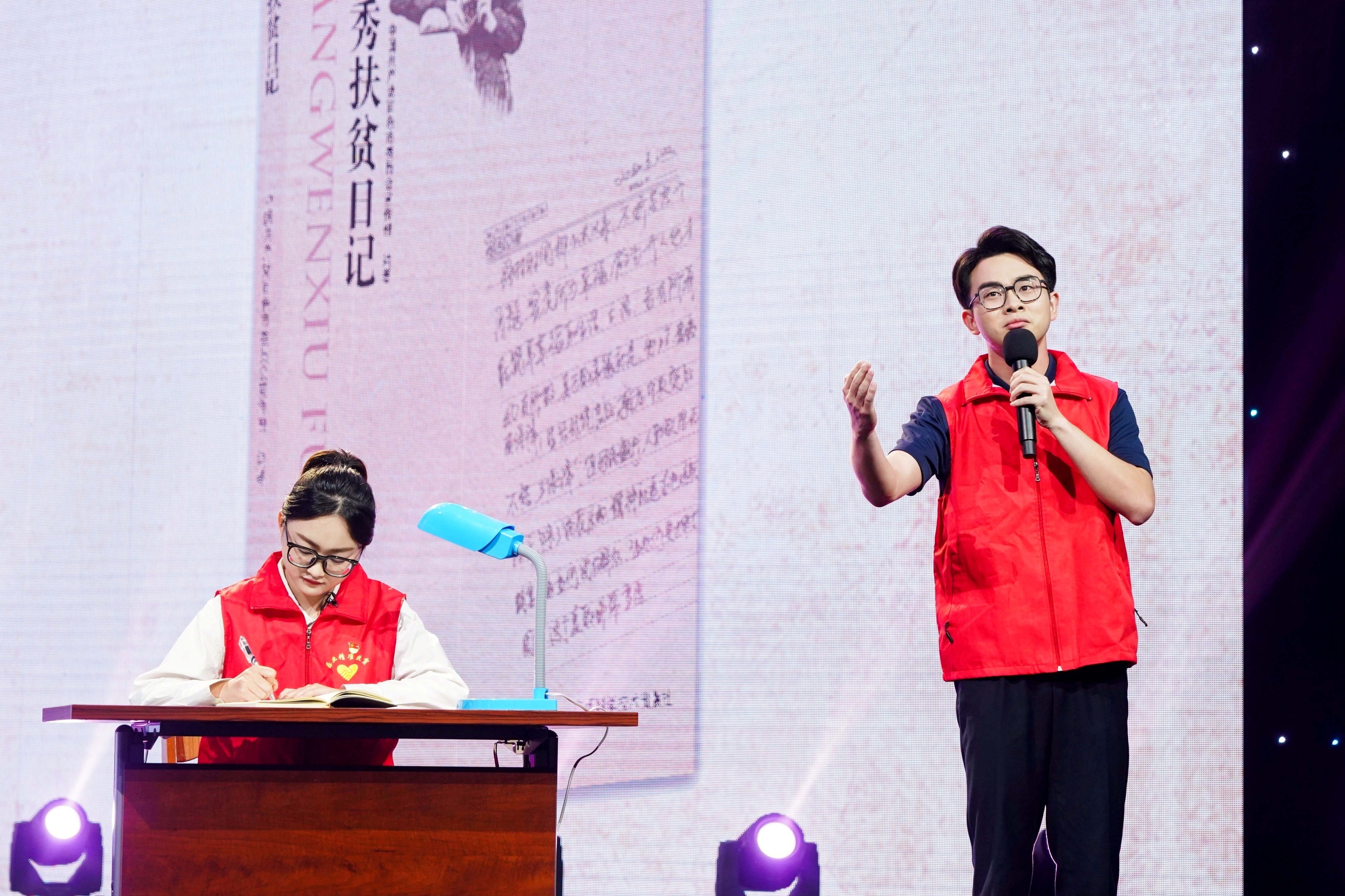 本次思政公開課節選了《黃文秀扶貧日記》中的內容加以改編。廣西大學新聞與傳播學院李朝珍教授做故事主講,她和學生一道動情演繹黃文秀的故事,并通過一名即將參加支教的畢業生的視角,與黃文秀“隔空相望”,從榜樣事跡中汲取奮進力量,找到前行方向,展現了新時代青年勇敢追夢、擔當作為的精神風貌。廣西大學馬克思主義學院黨委副書記李海波副教授做思政主講,他帶領同學們從《黃文秀扶貧日記》中體悟青年為什么要奮斗、為什么而奮斗,深刻理解“她用美好青春詮釋了共產黨人的初心使命,譜寫了新時代的青春之歌”彰顯的奉獻精神、擔當精神和奮斗精神,勉勵大家在人生奮斗道路上爭做黃文秀式好青年。