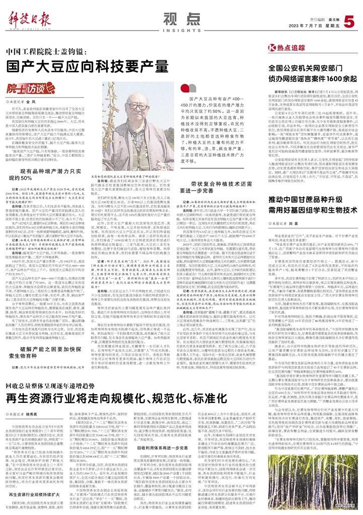 他表示,由中國科學院微生物研究所等組成的科研團隊,以高產(chǎn)量高糖分甘蔗新品種培育為目標,目前初步建立了甘蔗基因組編輯方法,為后續(xù)高效基因組編輯平臺的建立奠定了基礎。