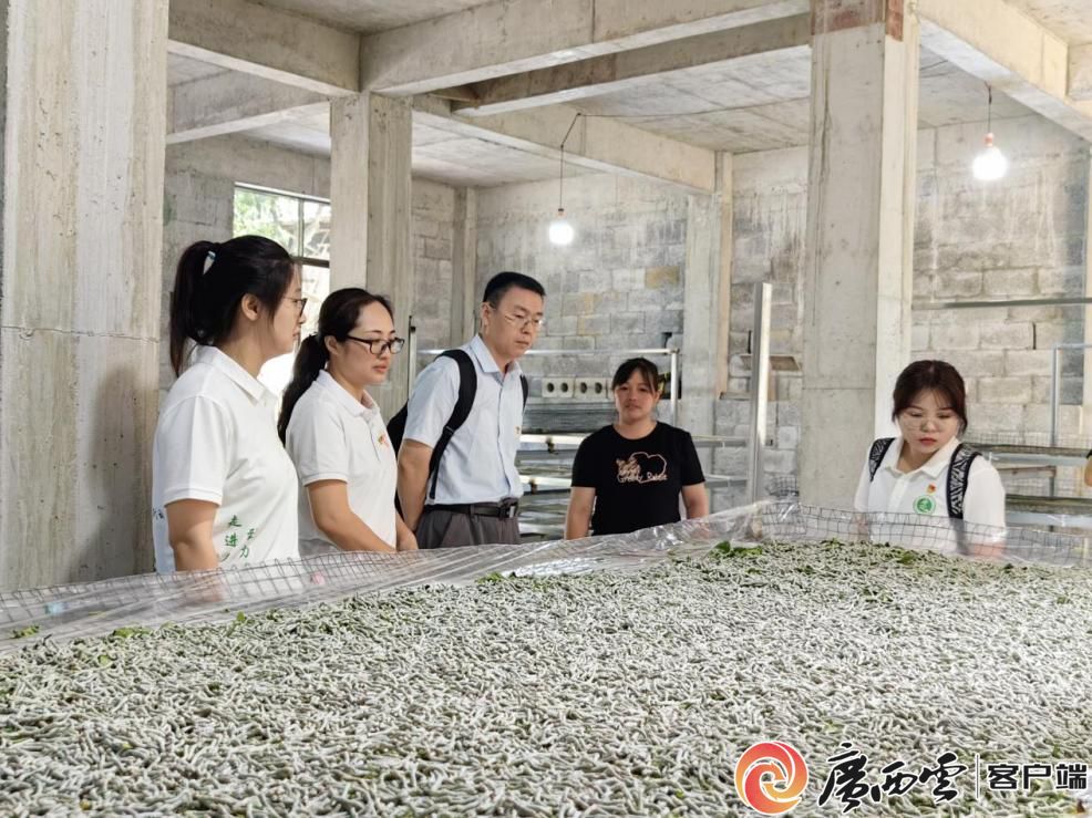 實踐團成員在百林村了解農戶養蠶情況。在百林村實地考察中,實踐團師生走村入戶調研,實地觀察百林村農戶養蠶情況,詳細了解當地桑蠶產業發展現狀與產業振興對農民實現脫貧致富目標的幫助,結合自身所知所學認真體悟。