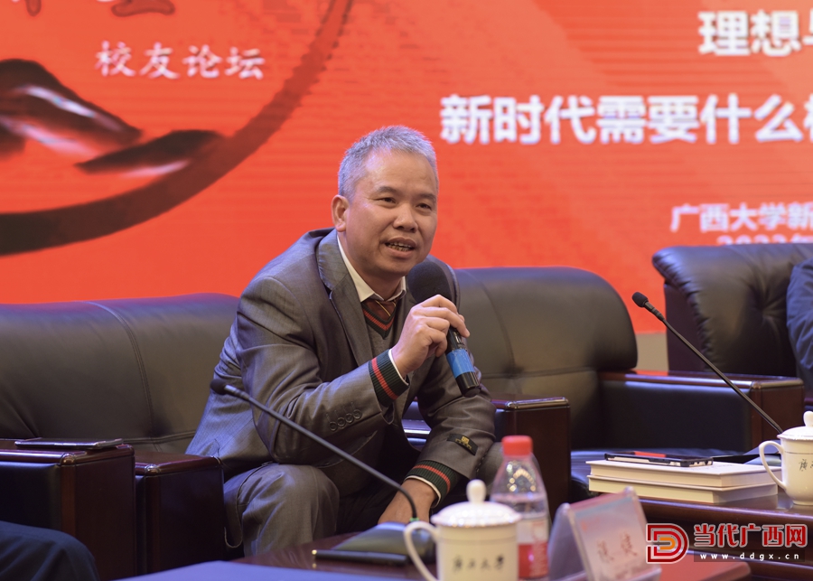 廣西大學黨委常委、副校長夏國恩出席論壇并致辭。中央廣播電視總臺廣西總站原黨委書記劉發丁,當代廣西雜志社社長、總編輯劉波,南寧日報社社長、總編輯劉復,光明日報廣西記者站站長周仕興,南寧廣播電視臺融媒體中心主任唐彩紅,中國新聞社廣西分社社委、采編中心主任蔣雪林等六位新聞與傳播學院校友,結合自身新聞傳播工作實踐,先后就全媒體時代新聞媒體需要怎樣的人才,在校生如何做好準備等議題談了體會和意見建議。