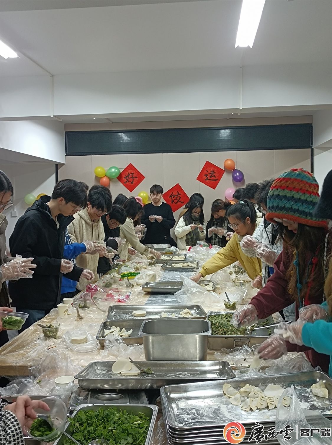 餃子香,情意濃,12月22日晚上,廣西大學在“一站式”學生社區組織開展以“情暖社區過冬至”為主題的傳統文化活動,吸引了全校上千名同學報名參與。自助生活室內,大家將一張張餃子皮攤在手心,再用筷子將餡料放在中間,合攏捏出花紋。待一碗碗熱氣騰騰的餃子出鍋上桌時,大家品嘗著美食,分享著喜悅,幸福洋溢在每個人的臉龐。現場歡聲笑語不斷,餃子香味四溢。