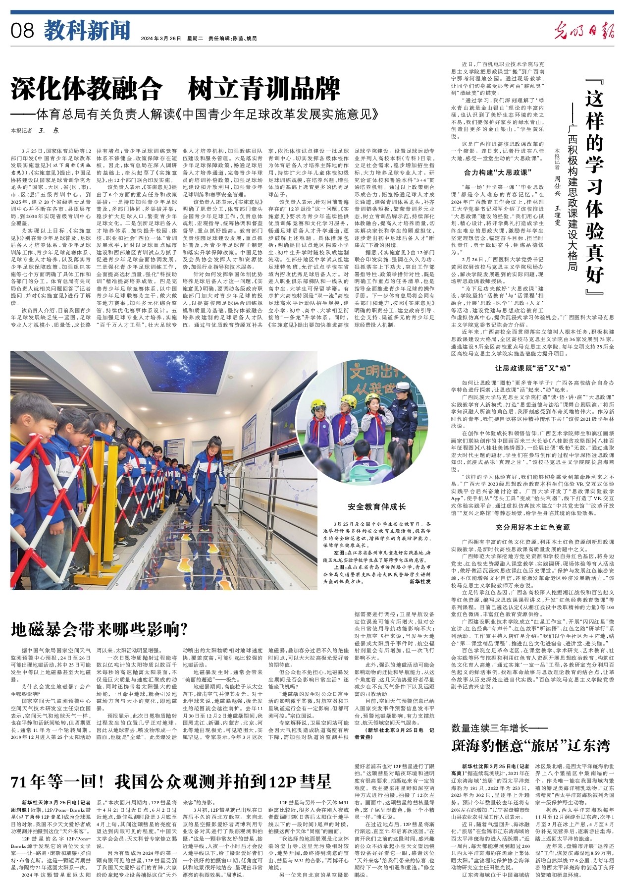 “每一場‘開學第一課’‘畢業思政課’都是令人難忘的青春記憶。”在2024年廣西教育工作會議上,桂林理工大學黨委書記鄧軍介紹了該校推進“大思政課”建設的經驗,“我們用心謀劃、精心設計,將開學典禮打造成學生終生難忘的思政大課,激勵青年學生堅定理想信念、錨定奮斗目標、擔當時代責任、勇于砥礪奮斗、錘煉品德修為。”