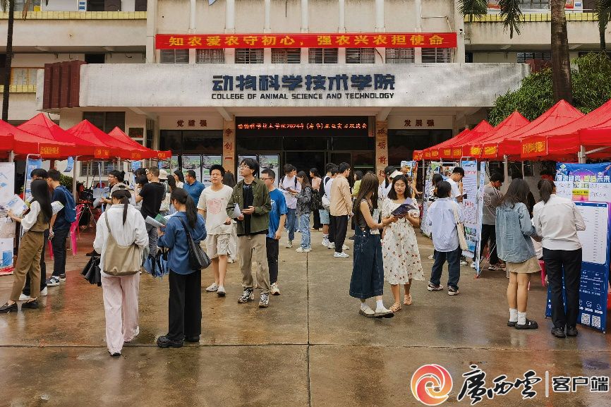 為更好地推進學生就業工作,4月23日,廣西大學動物科學技術學院在學院大樓前坪以“春風送崗促就業,‘畜’勢待發向未來”為主題,舉辦2024年(春季)就業實習雙選會。