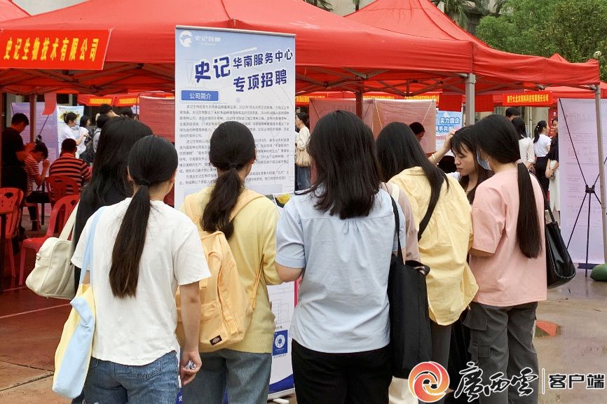 本次雙選會應用數字技術,依托微信公眾號、學院主頁等平臺,及時將參會信息推送給在校學生和用人單位,通過開展精準對接服務,大大提高求職學生和用人單位參會的便捷度、滿意度。現場的廣西高校畢業生“留桂就業計劃”展區為參會學生展示了各設區市就業創業政策清單。此外,雙選會還設置了黨員先鋒服務崗,提供政策咨詢、手續辦理、資料打印等志愿服務。
