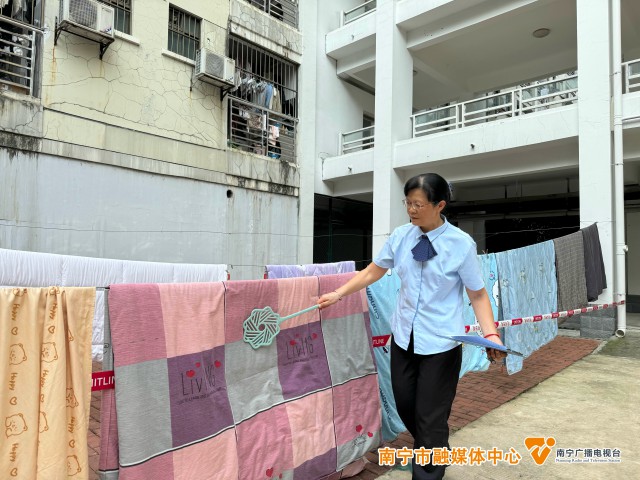 廣西大學學生趙偉熊說:“這個樓棟有一個群,阿姨在群里面發一個接龍,要預約的同學就去填一些信息,等到了曬被子的日期,阿姨直接把同學被子拿去曬,我覺得挺貼心的。”