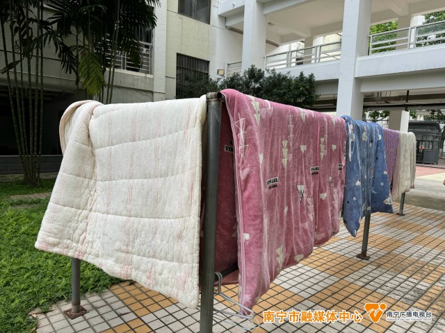 廣西大學舍管阿姨莫婷婷表示:“我們一天要曬30床被子,如果天氣好,上午8:30就開始曬,再到下午太陽準備下山就收回來。如果中途遇見天氣陰了,就趕緊收回來,每天跑幾趟。孩子學習很忙根本沒時間曬被子,我們把這幫孩子當成自己孩子一樣,給他們感受家的溫暖。”