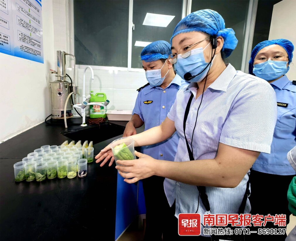 在廣西大學(xué)秀苑餐廳食品檢測(cè)室,苦瓜、茄子、西蘭花等多個(gè)蔬菜品種的留樣放置在小杯里,以備隨時(shí)檢查。“昨天送來(lái)的青尖椒、西芹檢驗(yàn)不合格,已經(jīng)全部退貨。”食堂工作人員說(shuō)。