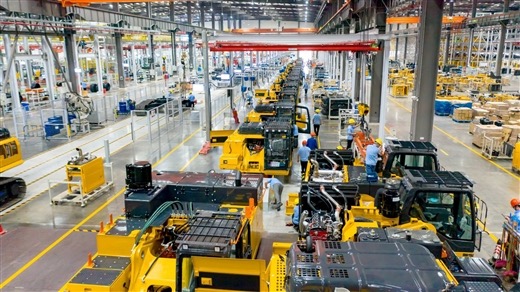 柳工挖掘機智慧工廠大型挖掘機裝配線。 唐幸攝