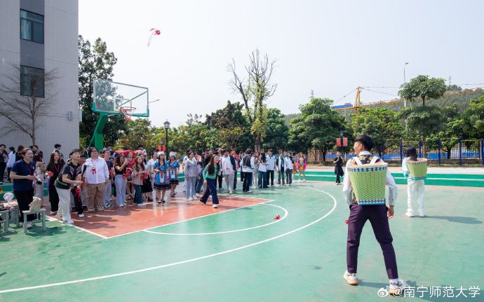 越南留學生們參加拋繡球活動。南寧師范大學供圖