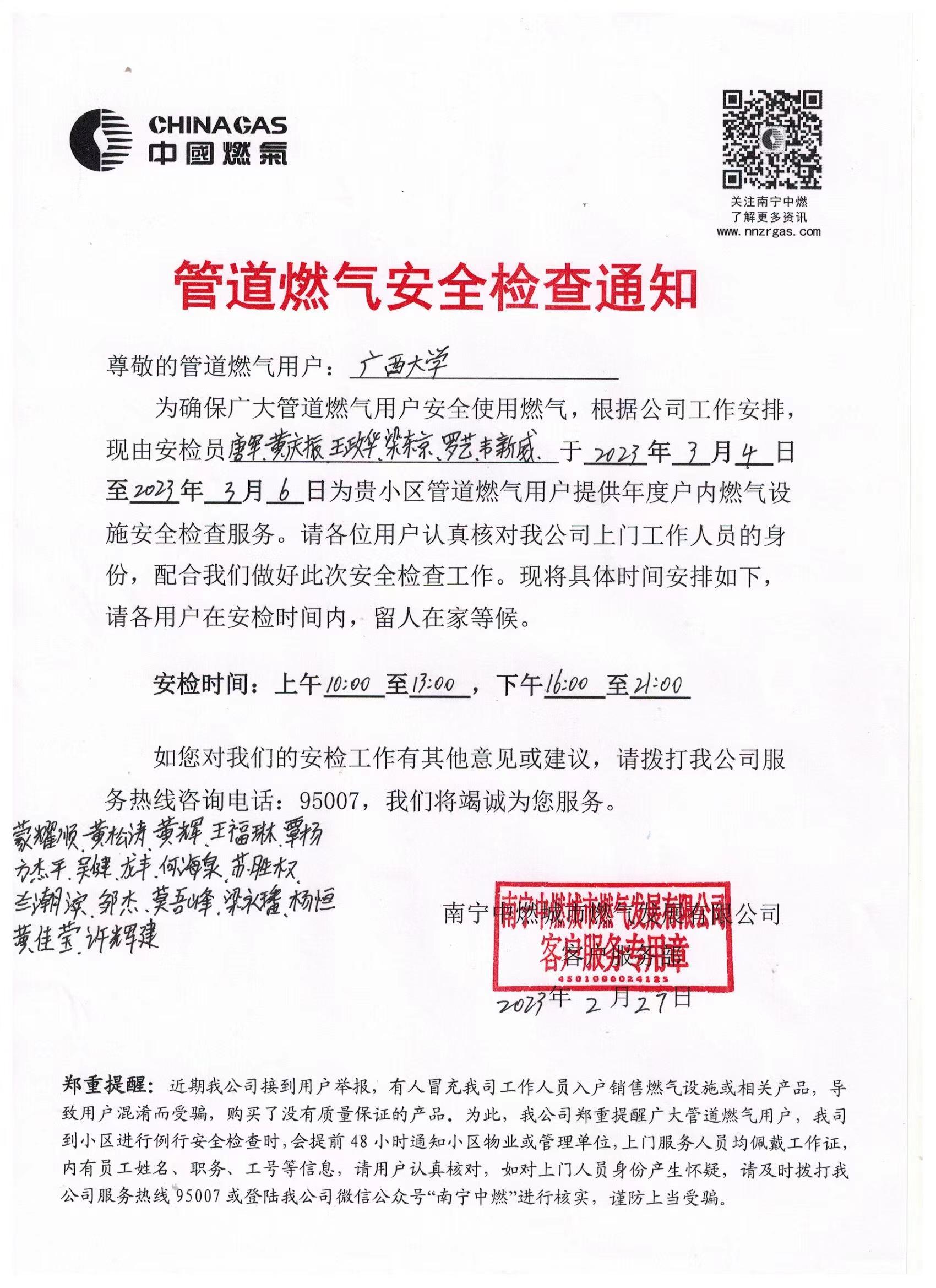 管道燃?xì)獍踩珯z查通知