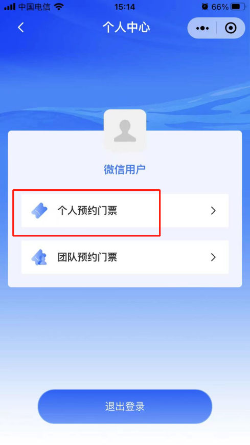 8. 個人中心-個人門票預約中可查看個人預約記錄。